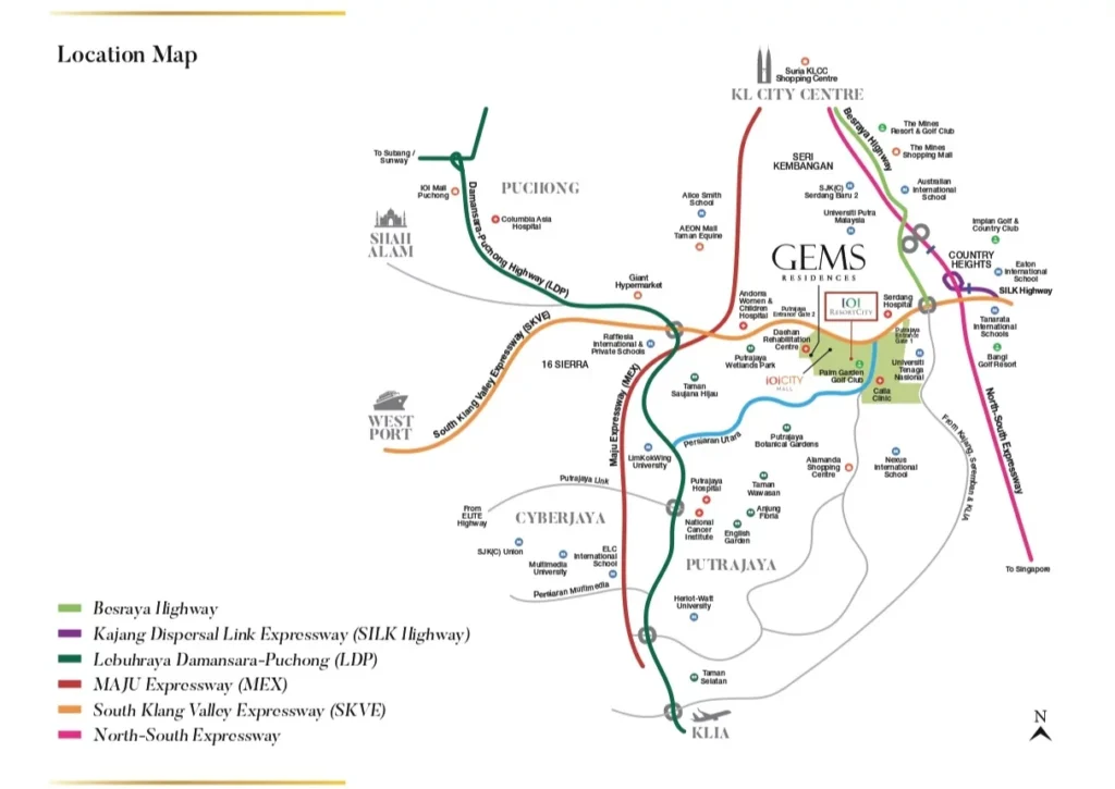 Nestled within the idyllic backdrop of IOI Resort City, Gems Residences presents an unparalleled lifestyle where work, leisure and convenience intersect seamlessly. From buzzing shopping malls, excellent healthcare, bustling corporate offices to sprawling parks and the Palm Garden Golf Club, everything you need is close at hand. Truly the epitome of live, work and play coming together in one brilliant address.